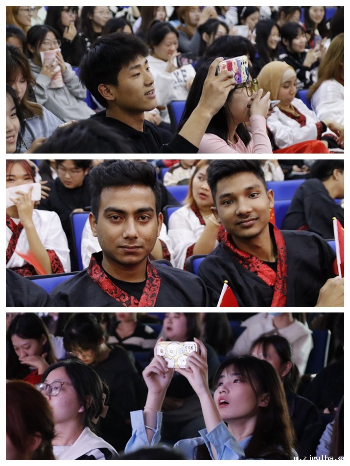 现场进行了精彩的文艺表演,器乐演奏、舞蹈、朗诵、合唱等节目,赞颂了拼搏的青春年华,表达了怀抱青春梦想,一路前行的美好期盼。留学生们也积极参与,登台献唱了歌曲《茉莉花》,中外学生相互学习,进一步加深了文化交流。