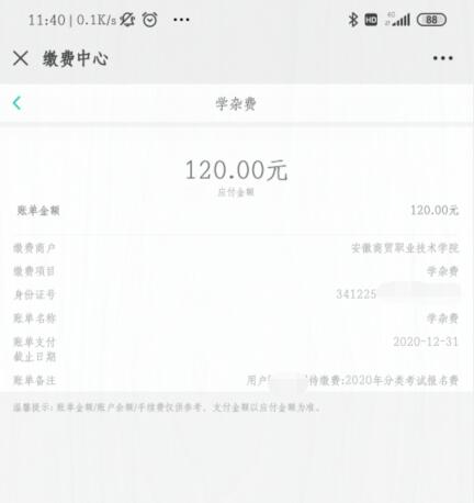 2.考生输入身份证号码进入缴费页面,缴费标准120元/生。
